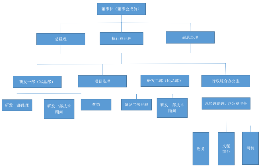 南京卓礫智測控技術(shù)有限公司實(shí)施董事會領(lǐng)導(dǎo)下的總經(jīng)理負(fù)責(zé)制的現(xiàn)代企業(yè)管理制度,全面負(fù)責(zé)企業(yè)的生產(chǎn)、經(jīng)營、技術(shù)、營銷等各項管理工作,下設(shè)副總、項目監(jiān)理、軍品研發(fā)部、民品研發(fā)部以及行政辦公室。