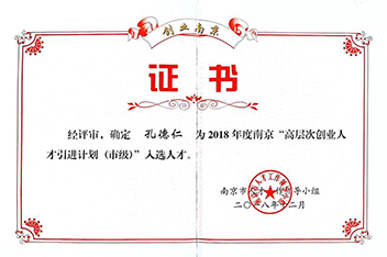 2018年法人獲得《高層次創(chuàng)業(yè)人才引進(jìn)計(jì)劃》